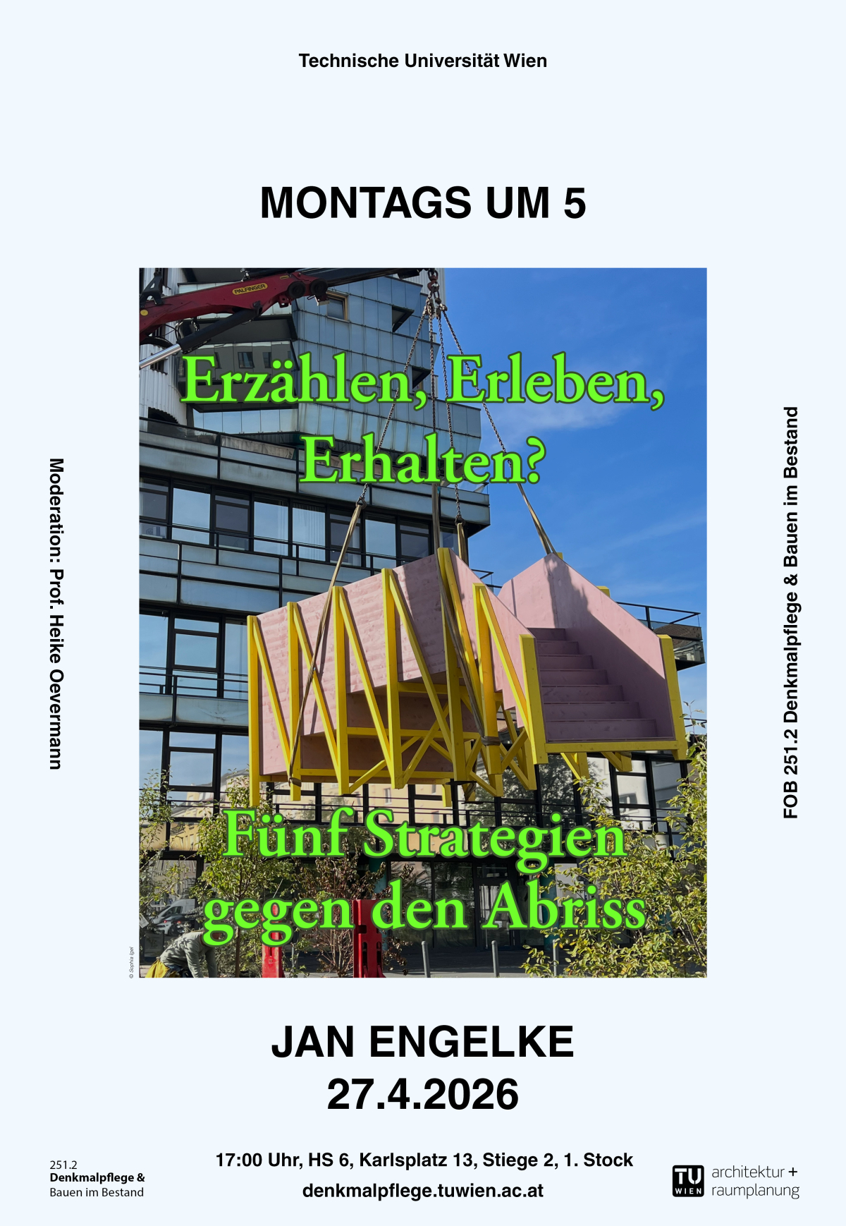 Montags um 5: Jan Engelke – Erzählen, Erleben, Erhalten? Fünf Strategien gegen den Abriss
