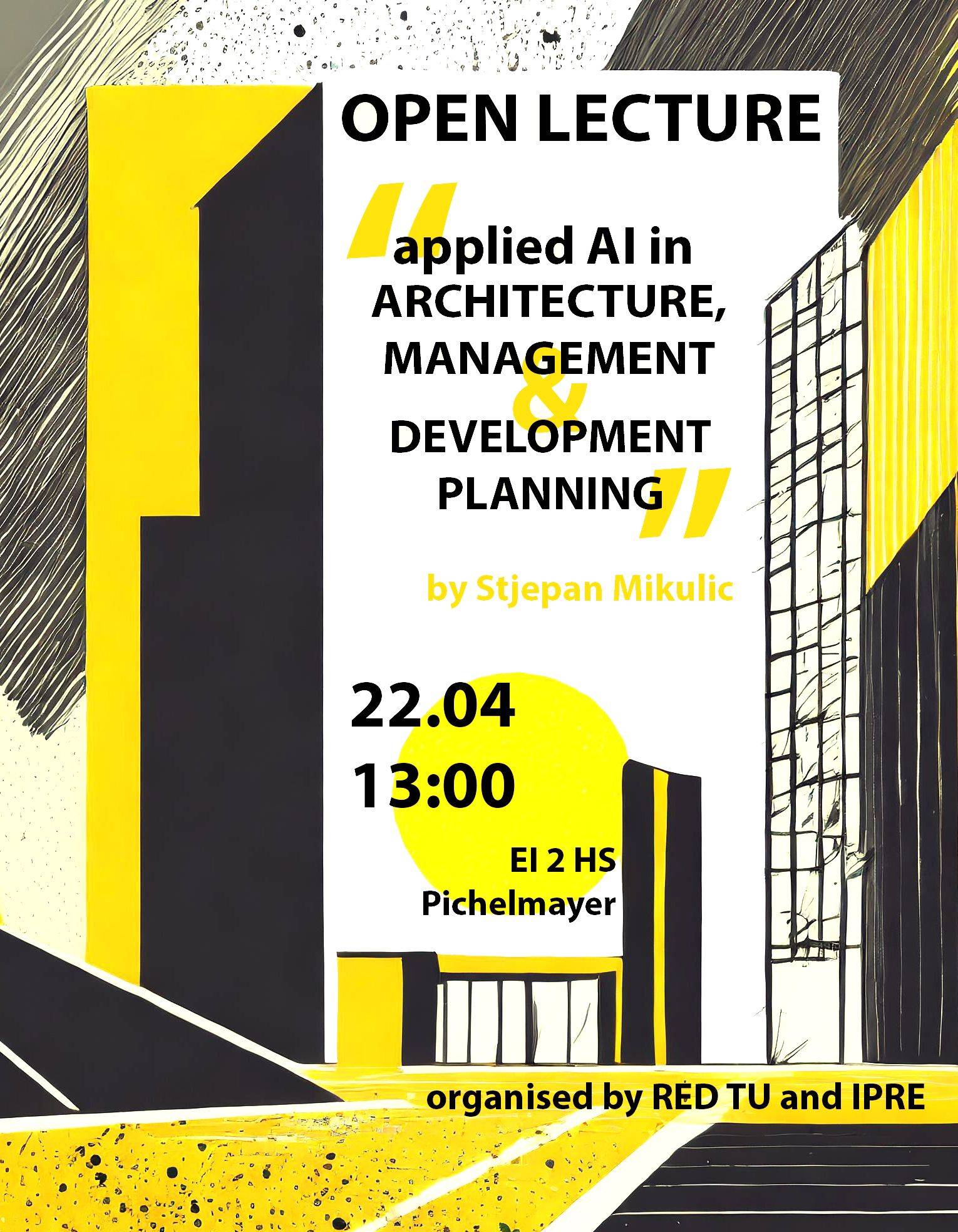 Join us for an insightful lecture organized by IPRE and RED TU Wien, featuring Stjepan Mikulić, on the topic of Applied AI in Architecture, Management and Development Planning.
