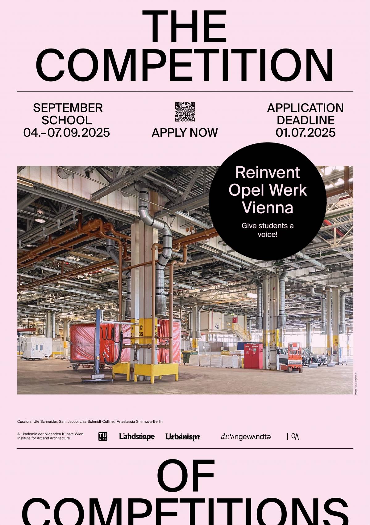 The three architecture schools of Vienna—the IKA (Academy of Fine Arts Vienna), the IoA (University of Applied Arts Vienna), and the Institute of Urban Design and Landscape Architecture (Technical University Vienna)—are pleased to announce the second edition of their joint educational initiative: September School – The Competition of Competitions.