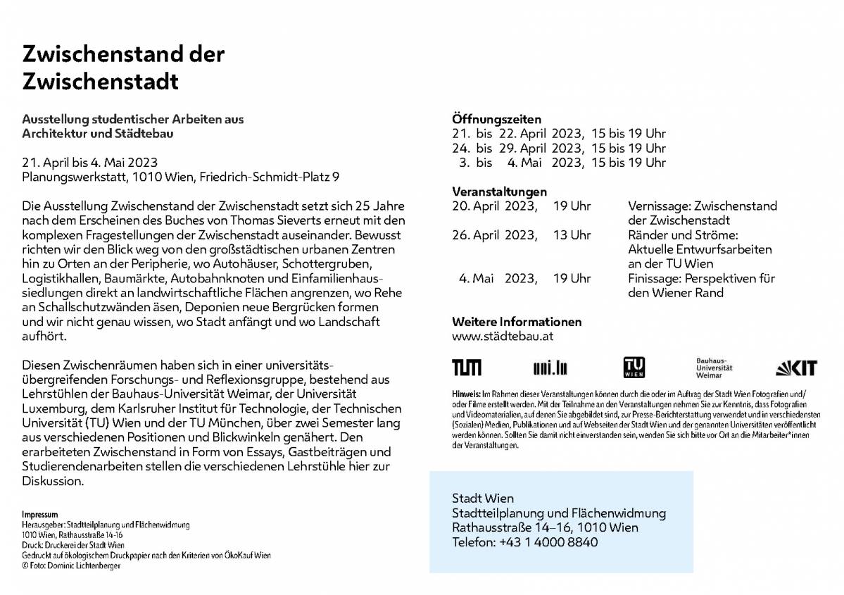 20:00 Uhr Eröffnung: Ute Schneider, Sebastian Sattlegger, Johannes Bretschneider, TU Wien