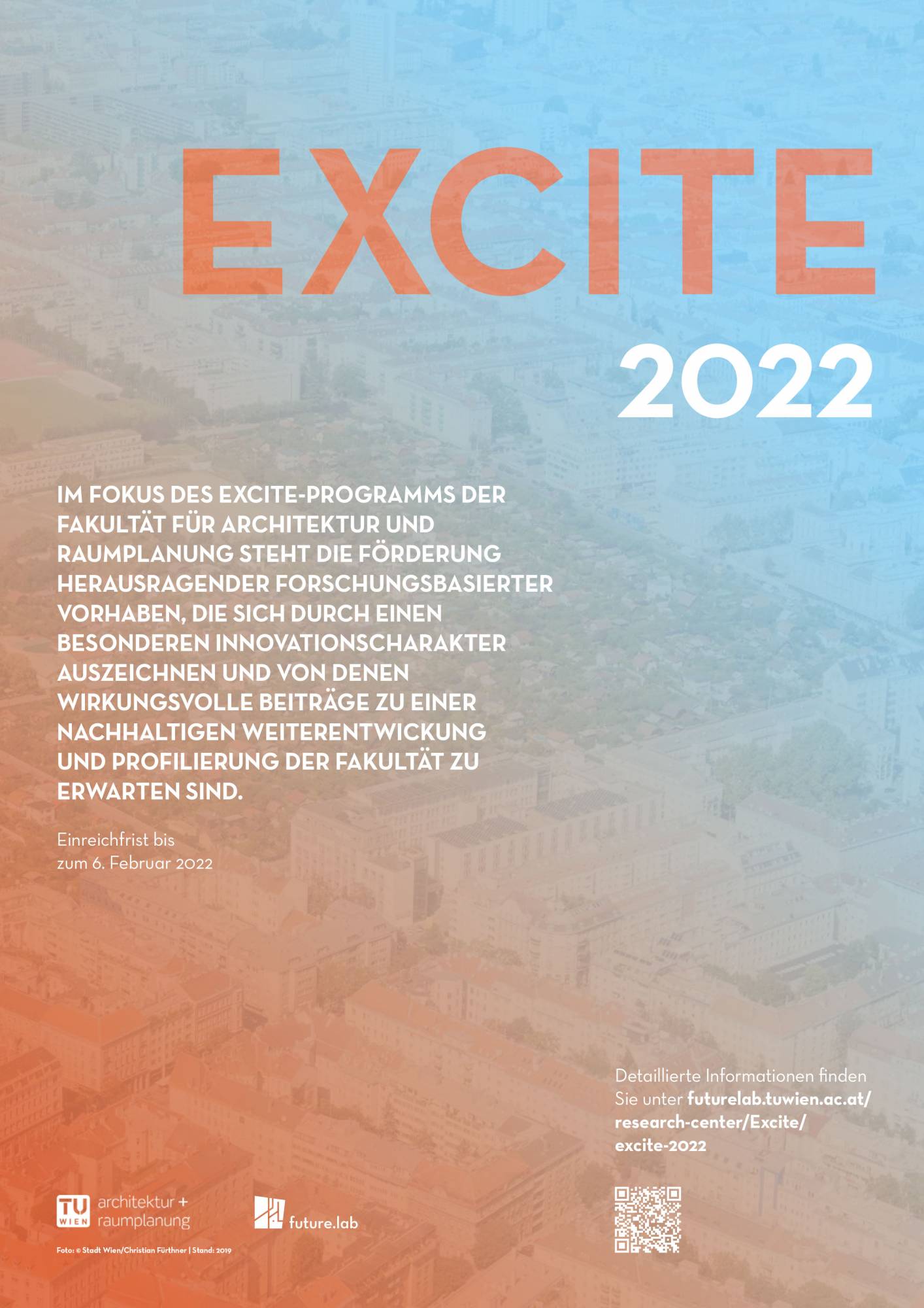 Auch im dritten Jahr des EXCITE-Programms der Fakultät für Architektur und Raumplanung stand die Förderung herausragender forschungsbasierter Vorhaben im Mittelpunkt. Gesucht wurden Vorhaben, die sich durch einen besonderen Innovationscharakter auszeichnen und die nachhaltig wirkende Beiträge zur Weiterentwicklung und Profilierung der Fakultät leisten.