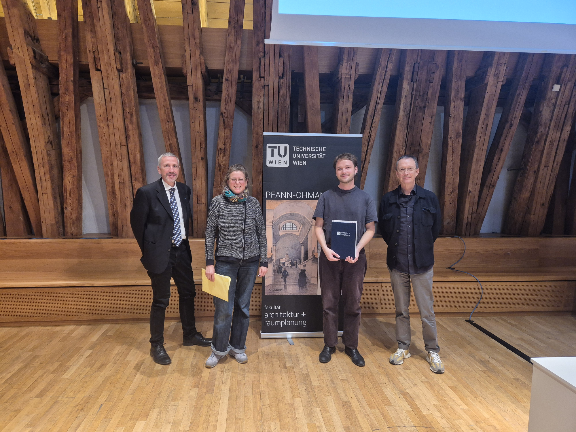 The Pfann Ohmann Prize funds an annual award sum of € 4000. It is divided equally between two award winners, which are selected by a prominent jury consisting of the Vice Rector for Digitization and Infrastructure of the TU Wien, the Dean of the Faculty of Architecture and Spatial Planning and the heads of the individual institutes.